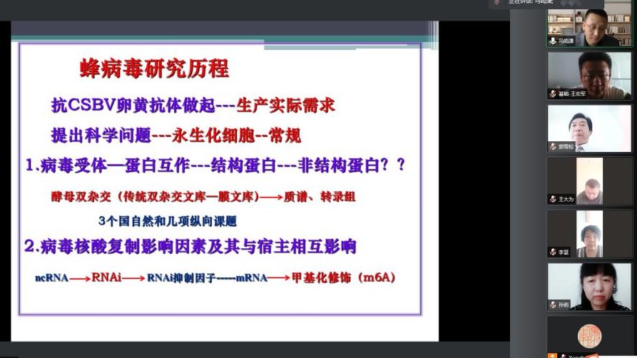2022年4月8日14:30,3044永利集团以线上的形式,举行学术报告“从蜂病毒瓶颈突破现代生物学技术应用与公司科研思考”。报告邀请到了3044永利集团经理马鸣潇教授。公司的老师、研究生代表参加了此次学术报告活动。本次报告气氛融洽、热烈,浓厚了公司科研氛围。