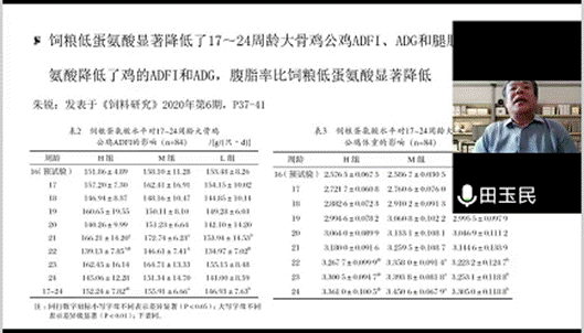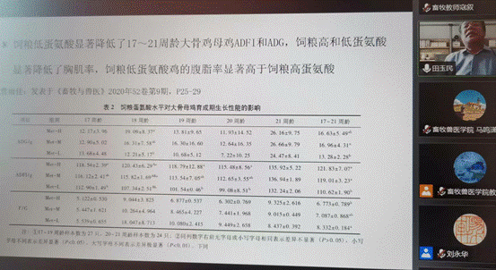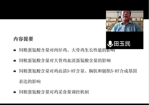 田玉民教授讲授了饲粮蛋氨酸含量对肉鸡、大骨鸡生产性能生长影响的研究。讲座结束后,他就师生提出的问题进行了在线解答和互动交流。