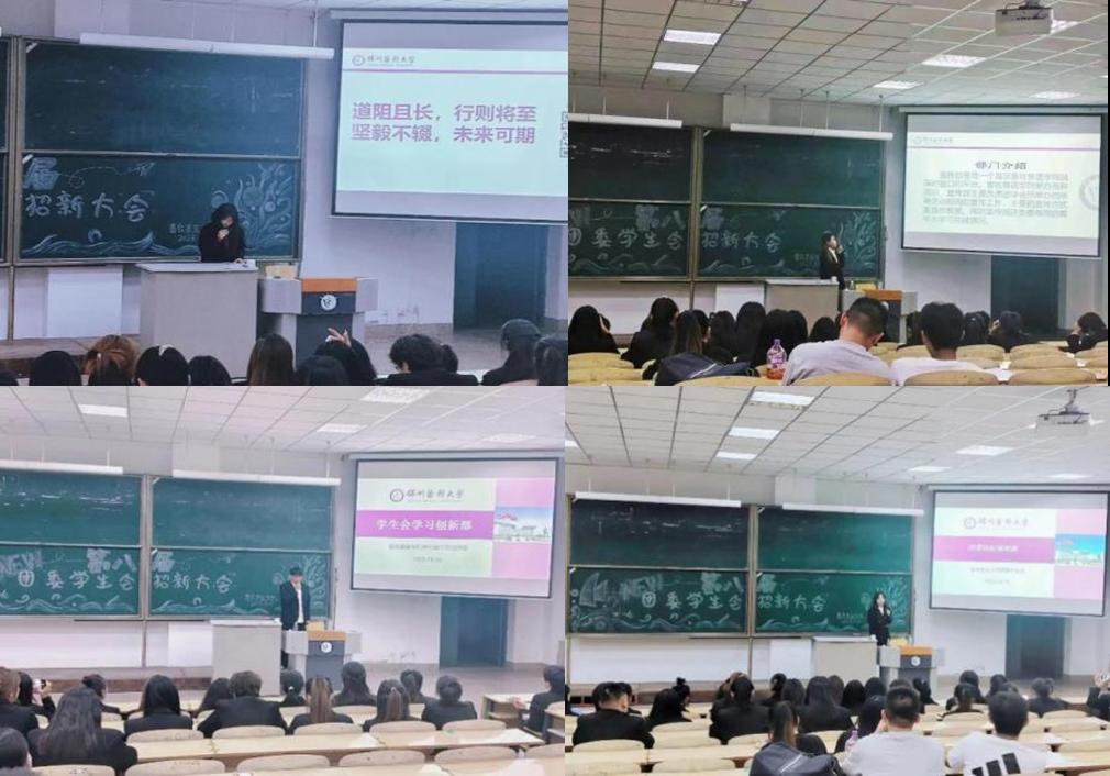 会上,各副部长认真的为2023级新生们讲解介绍了团委员工会各部门成员,职能及日常工作,包括学习创新部、文艺体育部、生活权益部、组织部、宣传部等各部门都通过招新大会向新生们展示各自的工作内容和愿景。使同学们对员工会整体工作要务以及自己所向往的部门都有了深入的了解,并鼓励新生们积极参与其中,发展自己的兴趣爱好、锻炼领导能力和才艺。