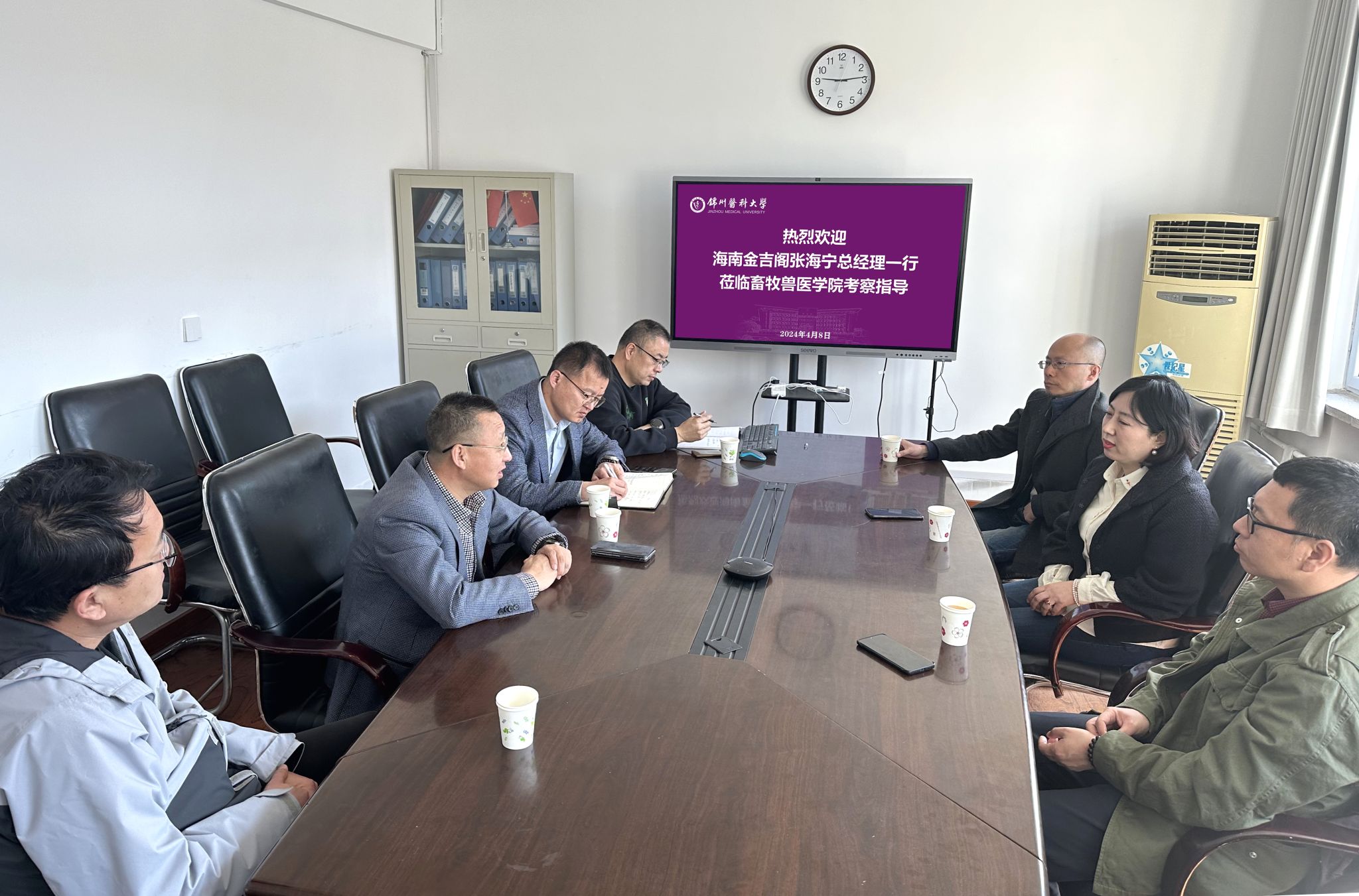 海南金吉阁张海宁总经理介绍了公司的发展现状,公司着力打造辽西地区家禽养殖的龙头企业,在此基础上,希望通过校企合作的方式,双方以共同的人才培养理念为路径,促进合作发展。