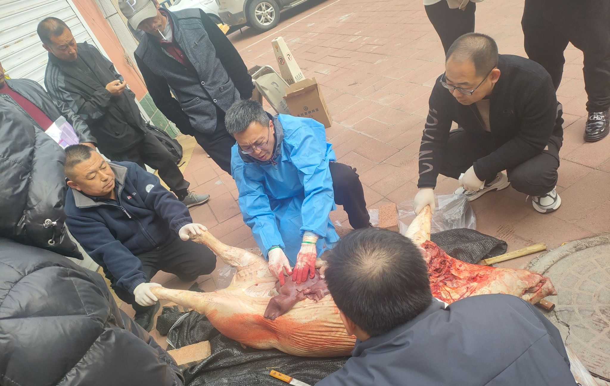 唐峰教授为农民技术员讲解生猪的检疫与防疫方法,并现场剖检生猪示范,与学员积极交流解答问题。老师们的讲解内容丰富,语言通俗易懂。课程结束后还现场接受了学员的提问,为学员解决生产中遇到的一些问题,深受学员欢迎。